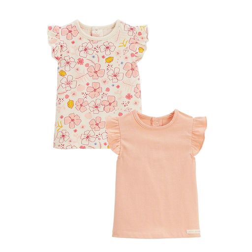 Ce lot de 2 t-shirts permet de varier les looks en toute simplicité. Entre imprimé fleuri et modèle uni, ils s'intègrent facilement dans le vestiaire de bébé. Produit labellisé STANDARD 100 by OEKO-TEX ® (BJ020 189402 TESTEX) Lot pratique pour varier les tenues Jolis volants sur les épaules Photos n
