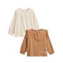 Un duo plein de tendresse : un t-shirt rose poudré et un terre cuite, L'un avec de jolis volants brodés et d'un petit hérisson, l'autre avec un imprimé discret et tendance. Faciles à assortir, confortables et pleins de charme pour les looks du quotidien.Produit labellisé STANDARD 100 by OEKO-TEX ® (