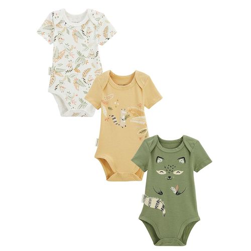 Ce lot de 3 bodies manches courtes offre douceur et confort au quotidien. Avec leur petit raton laveur et leurs imprimés feuillage, ils accompagnent bébé toute la saison et facile à assortir. Col US pour faciliter le passage de la tête Lot pratique pour varier les tenues Ouverture par pressions à l'