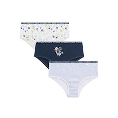 Un trio de culottes confortables dans les tons bleu, gris et écru, joliment décorées de petits motifs. Douces, bien coupées et faciles à porter au quotidien, elles ajoutent une touche de saison à la routine des enfants.Trop pratique en lot de 3 !Photos non contractuelles : les visuels sont fournis à