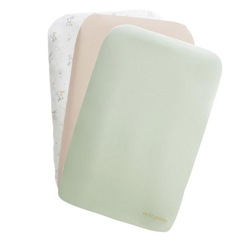 Apportez une touche de douceur et d'élégance à l'espace de change de bébé avec ce lot de 3 housses de matelas à langer. Du vert, du vanille et de l'écru avec un superbe imprimé, ils sont trop mignons.Facilement adaptable à la plupart des matelas à langer en mousse non rigides grâce à son élastiqueJo