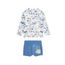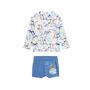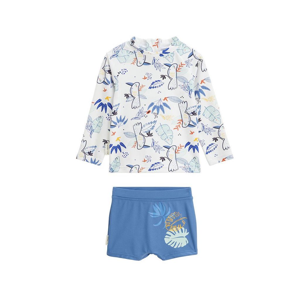 Craquez pour cet ensemble de maillot de bain ! Avec ton t-shirt et son petit boxer, il sera parfait pour protéger votre petit des rayons du soleil. On adore ces tons bleus qui donne un côté surfer ! Soyez rassuré, votre petit bout sera protégé du soleil grâce à son t-shirt à manches longues qui prot