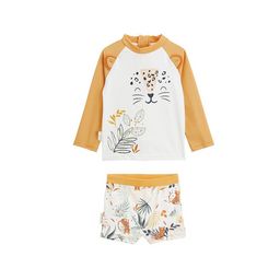 Partez à l'aventure avec notre joli maillot de bain 2 pièces. Dans de jolis tons ocres, le t-shirt est parfaitemement assorti au boxer pour un look canon même en bord de mer. Soyez rassuré, votre petit bout sera protégé du soleil grâce à son t-shirt à manches longues qui protège contre les UV. Atten