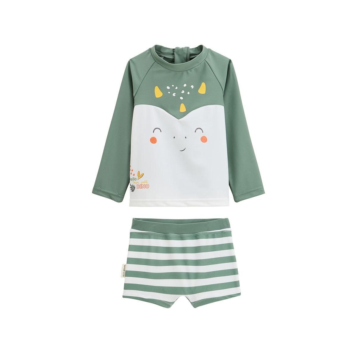 Maillot de bain bébé 2 pièces t-shirt de protection UV et boxer Hello Dino