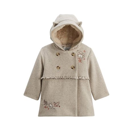 Un manteau raffiné et pratique pour les premiers froids. Tout doux, on craque pour sa capuche à petites oreilles, ses broderies délicates et sa double fermeture zip + boutons. Une pièce élégante pour un look trop mimi, pensée pour allier confort et style. Une étiquette pour mettre le prénom de votre enfant : pratique pour retrouver ses affaires En fausse fourrure toute moelleuse à l'intérieur de la capuche Des petites touches de broderies canons Capuche Ouverture zippée sur toute la longueur avec patte de protection On craque sur son effet laine trop canonPhotos non contractuelles : les visuels sont fournis à titre illustratif. Les accessoires visibles ne sont pas inclus, l'offre concerne uniquement les pièces mentionnées dans le titre.