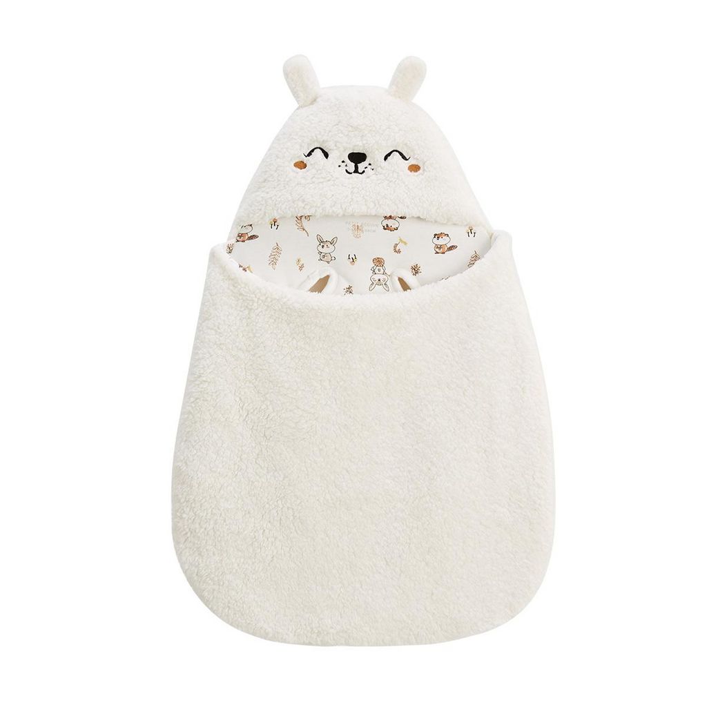 Un cocon tout doux pour bébé, ce nid d'ange en sherpa écru enveloppe votre tout-petit avec chaleur et confort. Sa capuche avec sa tête de lapin et ses grandes oreilles apportent une touche adorable et réconfortante. Parfait pour les balades fraîches ou les moments câlins. Le nid d'ange est conçu pou