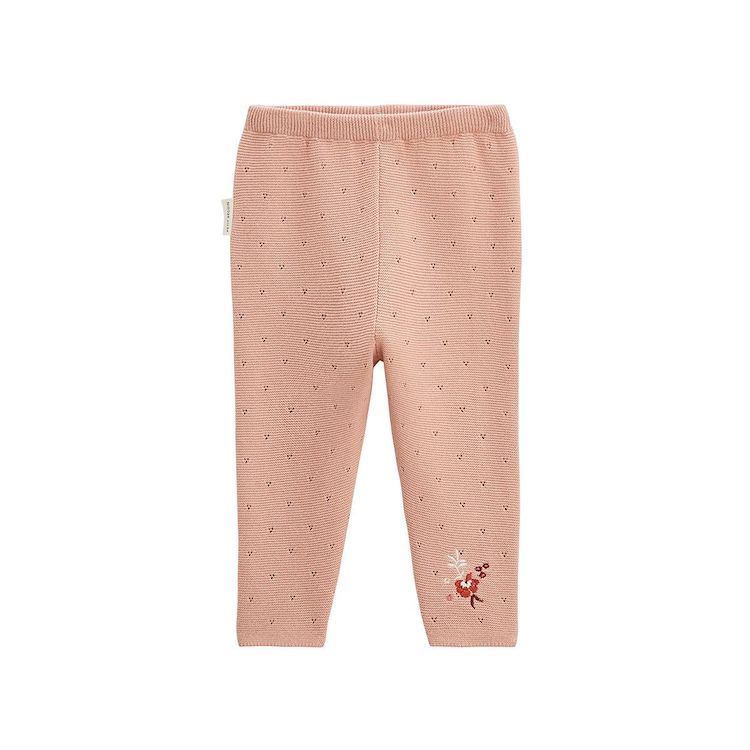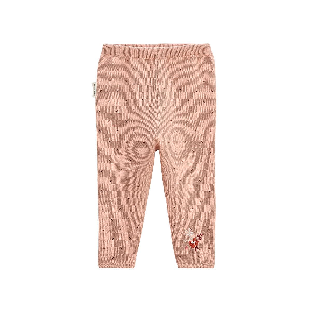 Un legging tout doux et confortable, en tricot effet pointelle pour une touche délicate. Sa jolie teinte rose s'accorde parfaitement avec le gilet assorti ou d'autres pièces du dressing.Un effet pointelle canonDe jolies broderies trop mimi !Photos non contractuelles : les visuels sont fournis à titr