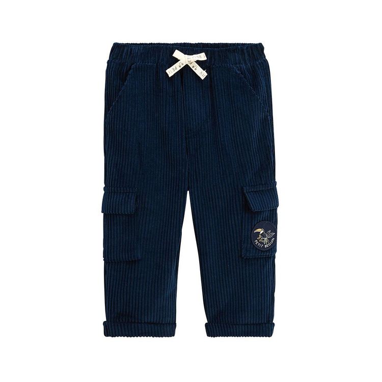 Un pantalon tout doux et super tendance ! En velours côtelé bleu foncé, il est chaud et confortable. Avec ses poches pratiques sur les cuisses, il porte un patch toucan coloré qui apporte une touche malicieuse et joyeuse à ce basique stylé.Taille élastiquée pour faciliter l'enfilage : plus de confor