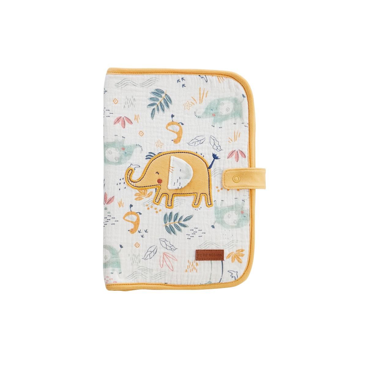 Avec son joli dessin d'éléphant, ce protège-carnet est parfait pour garder les premiers documents de bébé à l'abri avec douceur et style. Léger et pratique, il se glisse facilement dans le sac.Produit labellisé STANDARD 100 by OEKO-TEX ® (BJ020 189402 TESTEX)Dimensions : 24,5 x 17 cmEn gaze de coton