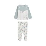 Un pyjama 2 pièces qui a tout l'air de ressembler à une grenouillère grâce à ses pieds antidérapants inclus ! Un pyjama deux pièces pour les petits qui veulent faire comme les grands. Les couleurs douces entre le bleu céladon et l'écru sont à tomber. Produit labellisé STANDARD 100 by OEKO-TEX ® (BJ0
