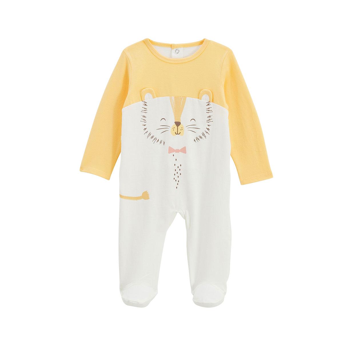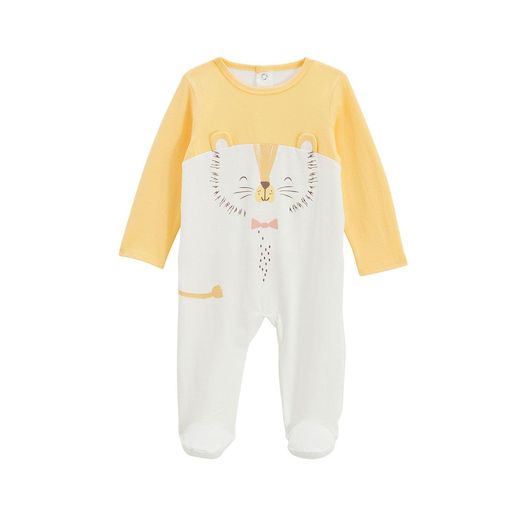 On craque pour ce pyjama, sa couleur écru et ses manches jaune soleil qui apportent une touche lumineuse. Le petit visage lion ajoute une note mignonne et pleine de tendresse. Un pyjama pensé pour dormir paisiblement. Pieds antidérapants à partir de la taille 12 mois -inclus- Ouverture par pressions