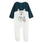 Retrouvez notre petit Léo, cet adorable léopard, sur ce pyjama tout doux en velours côtelé, il accompagnera bébé tout au long de ses nuits. Le petit + fantaisie : les petites oreilles du léopard sont en relief ! Pieds antidérapants à partir de la taille 12 mois -inclus- Produit labellisé STANDARD 10