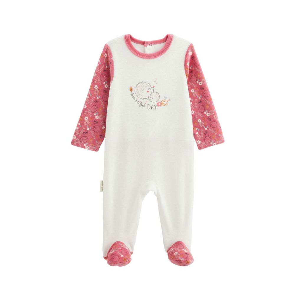 Comment ne pas craquer devant cette grenouillère rose et écrue tout en velours ? Elle saura maintenir votre petit bout au chaud pendant ses jolies nuits. On adore le contraste des manches imprimées. Fermeture par boutons-pression au dos pour un habillage facile En velours tout doux Photos non contra