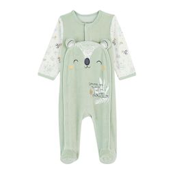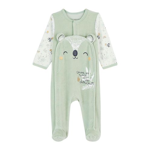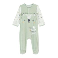 Dans un beau vert amande, cette grenouillère est notre coup de cœur ! Avec ses petites oreilles rembourrées et ses jolies manches all-over, elle fera craquer les parents. Douillette grâce à son velours, elle sera agréable pour votre petit bout. Sans oublier la facilité de l'habillage avec son ouvert