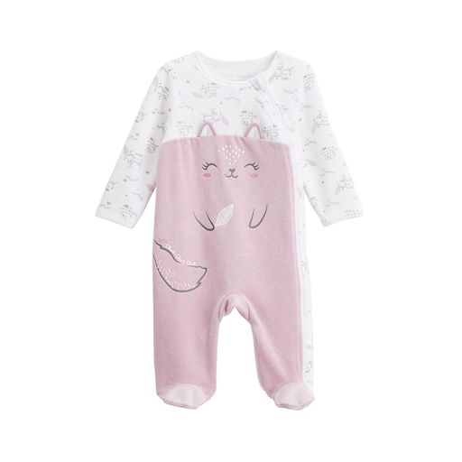 Un pyjama tout doux pour des nuits pleines de tendresse. On aime son mélange de rose et d'écru, sa petite tête de chat craquante et ses manches habillées d'un joli imprimé all-over. Avec son ouverture zippée, l'habillage de bébé devient simple et rapide.Produit labellisé STANDARD 100 by OEKO-TEX ® (
