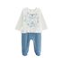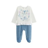 Le pyjama parfait pour les nuits d'hiver ! En velours doux, ce pyjama enveloppe bébé de chaleur et de confort. Le haut présente un adorable imprimé et est agrémenté d'un volant délicat à la taille. Associé à un joli bleu ciel, ce pyjama est à la fois pratique et élégant pour votre petit trésor.Produ