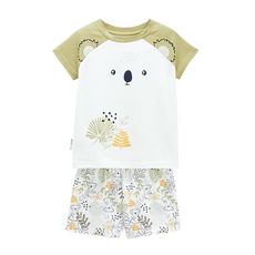 Un peu de fantaisie avec ce petit koala et ses petites oreilles imprimées. Pratique pour l'été, ce pyjama composé d'un t-shirt et d'un short sera parfait pour passer de douces nuits. Votre petit garçon va l'adorer ! De belles couleurs et un koala trop mignon ! Produit labellisé STANDARD 100 by OEKO-