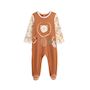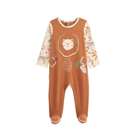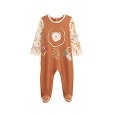Craquez pour cette grenouillère couleur caramel, et ces jolis manches vanille tout en contraste. Son petit lion veille sur les nuits de bébé. Avec sa matière légère et toute douce, mais aussi avec ses pressions bien pensées, elle sera vraiment trop pratique à enfiler. Une tenue parfaite pour faire d