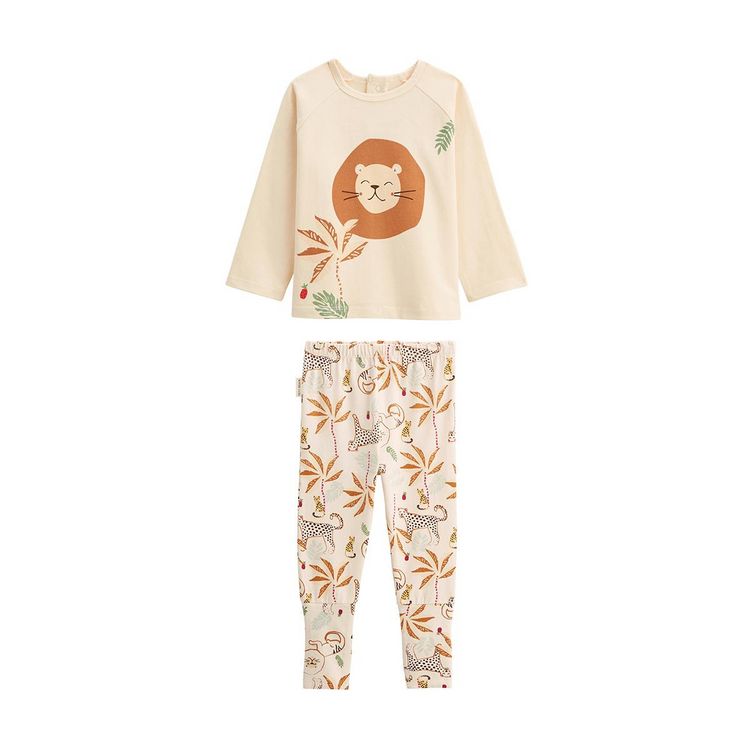 Ce pyjama deux pièces a son haut avec un petit lion craquant et son bas tout imprimé trop stylé. Les pieds retroussables sont parfaits pour tenir bébé bien au chaud pendant le dodo ou lui permettre de gambader en toute liberté. GRRR, on l'adore !Un pyjama deux pièces pour faire comme les grands !Des