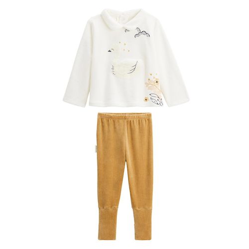 Pyjama enfant 2 pièces en velours à pieds retroussables Swan