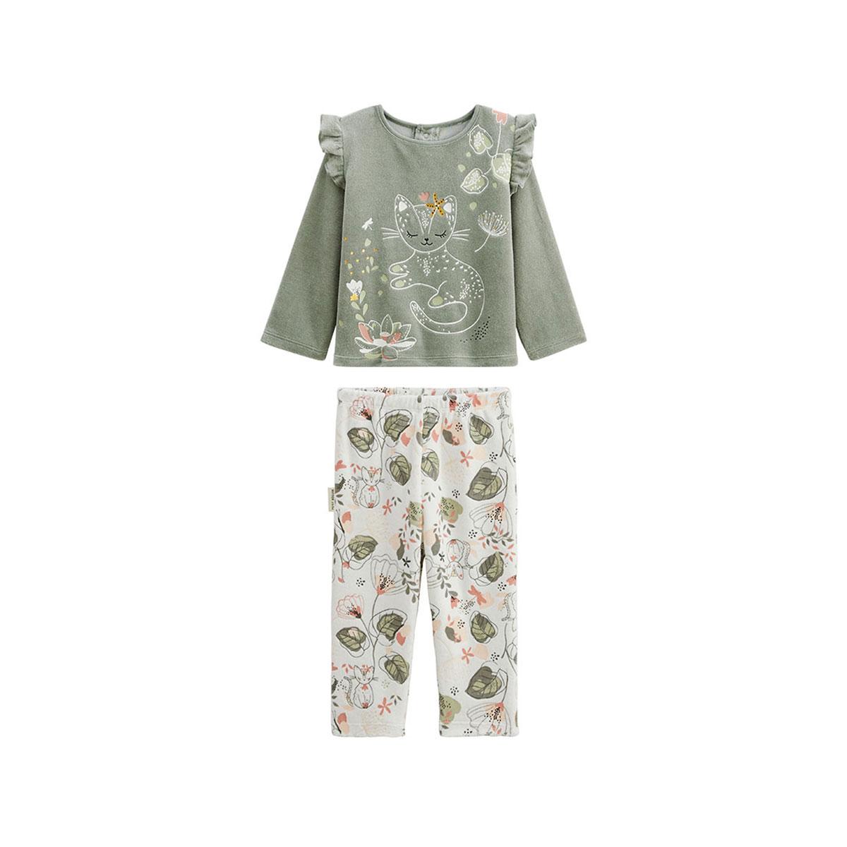 Qui a dit qu'on ne pouvait pas être chic même en dormant ? Notre pyjama deux pièces Lily s'invite dans le sommeil de votre fille. On craque notre petit chat dessiné trop mignon mais aussi pour les petits volants et touches de doré dans l'imprimé.En velours douillet pour plus de confortOuverture par