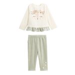 Un pyjama douillet avec un haut écru, son petit visage dessiné et ses jolis volants en bas. Le pantalon vert doux a un joli détail imprimé. Un ensemble confortable et craquant pour accompagner les nuits de bébé.En velours douillet pour plus de confortOuverture par pressions en haut du dos pour facil