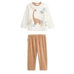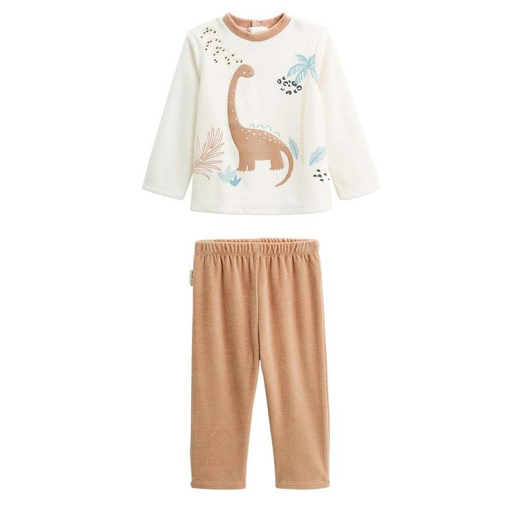 Velours tout doux, couleurs canons et dino rigolo en encre gonflante : ce pyjama 2 pièces coche toutes les cases du parfait compagnon de nuit. À enfiler pour cocooner avec style.Ouverture par pressions en haut du dosEn velours tout douxProduit labellisé STANDARD 100 by OEKO-TEX ®(SHKO 039388 - TESTE