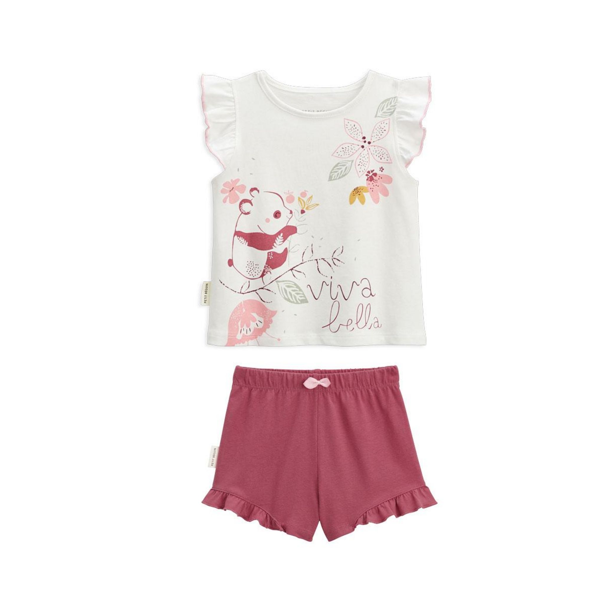 En savoir +Viva Bella ! Vive les pyjamas deux pièces et notre petit koala tout mielleux. Du rose à gogo pour passer des nuits douces et délicates. On craque pour nos volants sur les épaulettes et sur le bas du short. Des volants à croquer sur le short et le t-shirt ! Produit labellisé STANDARD 100 by OEKO-TEX ® (2309200 CENTEXBEL)