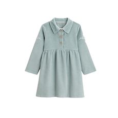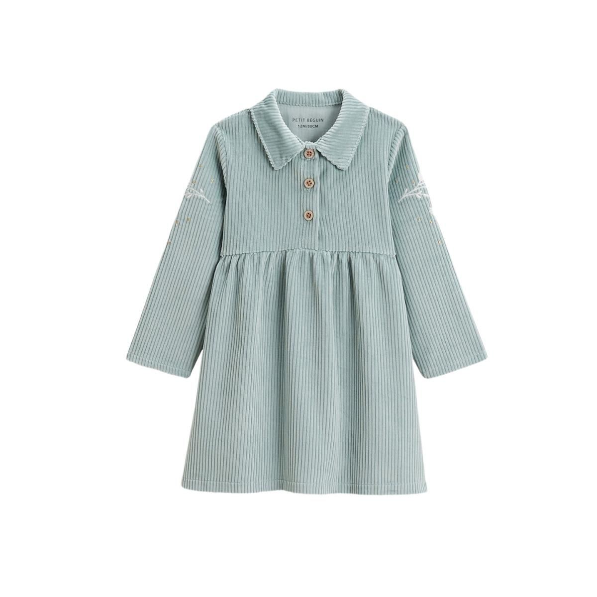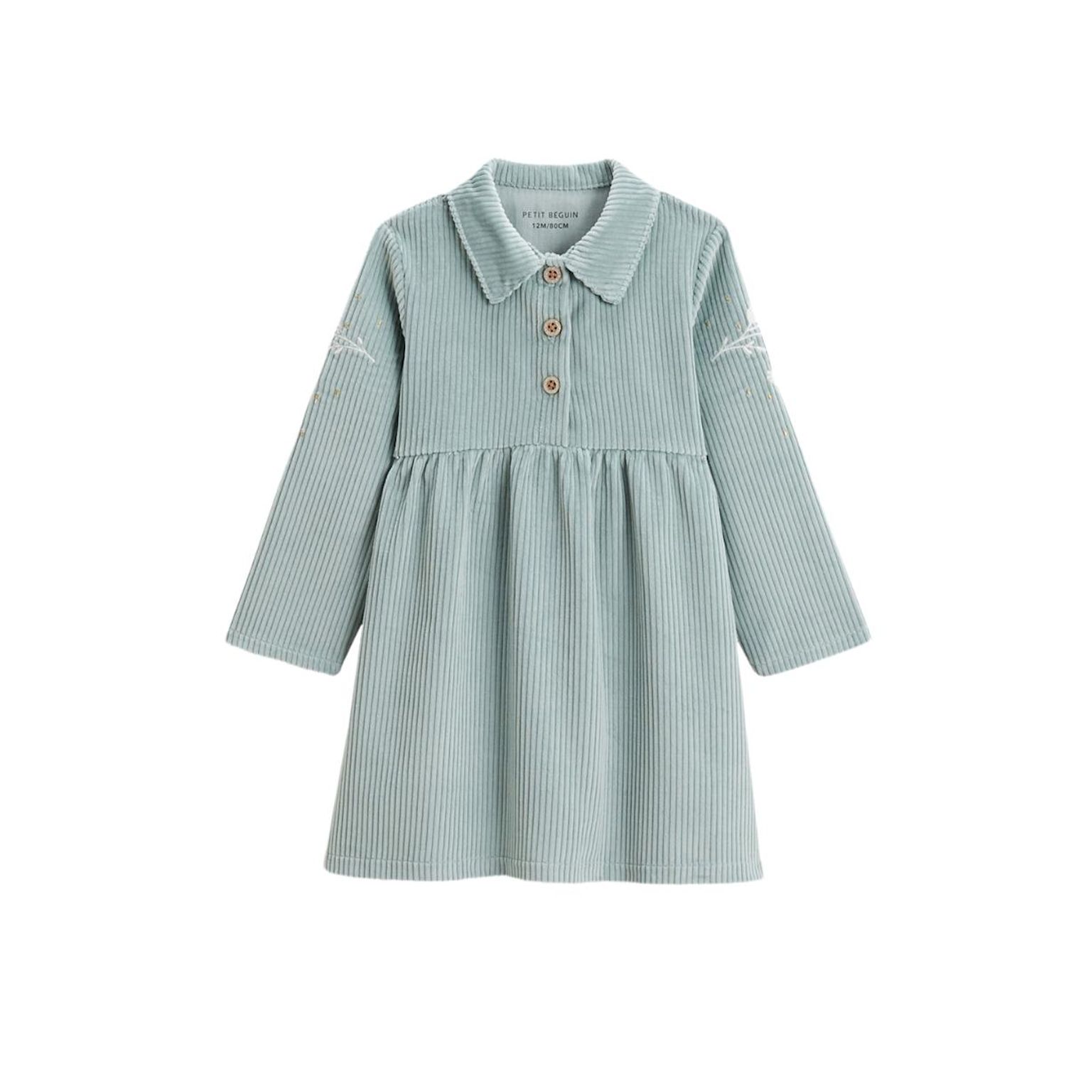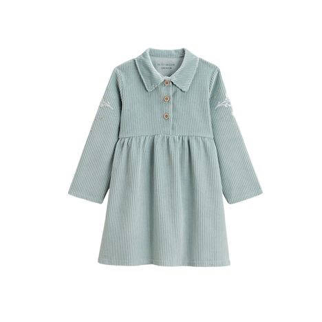 Ce sera sans aucun doute la robe coup de cœur de l'hiver. Craquez pour cette couleur bleue polaire qui s'invite dans le dressing de votre petit bout. On adore son côté chic grâce à ses touches de doré mais aussi le côté doux et confortable de sa matière en velours côtelé. Des petits boutons chic ave