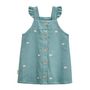 Vous venez de trouver la robe à absolument intégrer dans le dressing de votre enfant ! Une robe bleu/vert céladon en velours côtelé qui s'associe parfaitement avec un t-shirt. Cette jolie robe avec volants sur les brettelles réglables fera tomber des cœurs !Des petits volants aux épaulesRobe en velo
