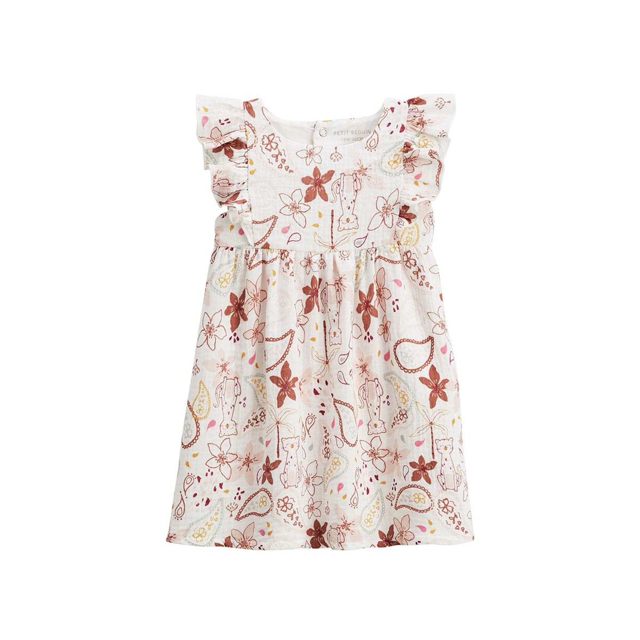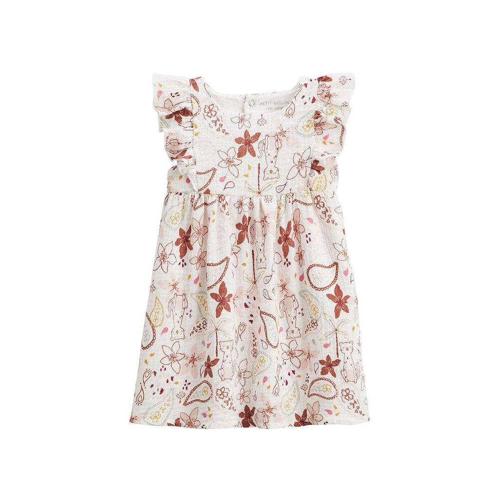 Une robe légère et trop mignonne pour les beaux jours. Son imprimé et ses jolis volants apportent une touche délicate et élégante. Facile à enfiler, elle accompagne votre petit bout avec douceur avec sa matière en coton gaufré. Matière toute douce, en coton gaufré Jolis volants, trop canon Produit l