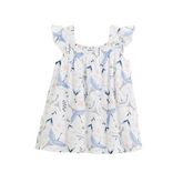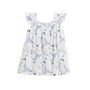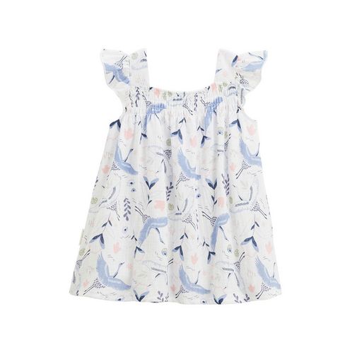 Cette robe bleue douce et légère est parfaite pour les journées ensoleillées. Son imprimé délicat apporte une touche estivale. Une robe simple, pratique et jolie, idéale pour toutes les occasions.En gaze de coton trop confortOuverture complète sur le devantJolis volants sur les épaulesPhotos non con