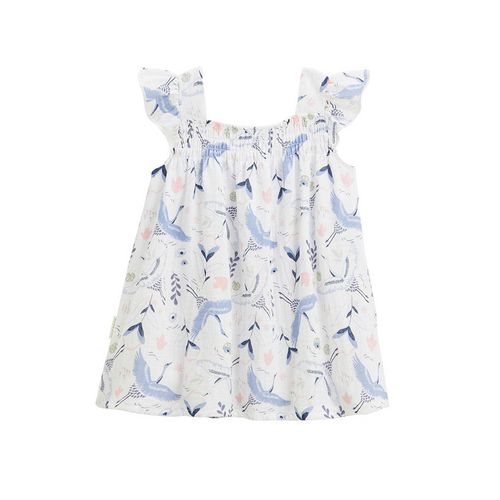 Cette robe bleue douce et légère est parfaite pour les journées ensoleillées. Son imprimé délicat apporte une touche estivale. Une robe simple, pratique et jolie, idéale pour toutes les occasions.En gaze de coton trop confortOuverture complète sur le devantJolis volants sur les épaulesPhotos non contractuelles : les visuels sont fournis à titre illustratif. Les accessoires visibles ne sont pas inclus, l'offre concerne uniquement les pièces mentionnées dans le titre.