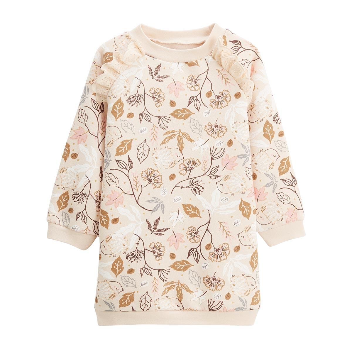 Une robe chaude et confortable pour l'automne, en molleton tout doux et habillée d'un imprimé feuillage. Facile à enfiler et agréable à porter, elle allie confort et jolis détails pour un look de saison tout en douceur.En molleton chaud, tout douxJolis volants en broderie anglaiseProduit labellisé S