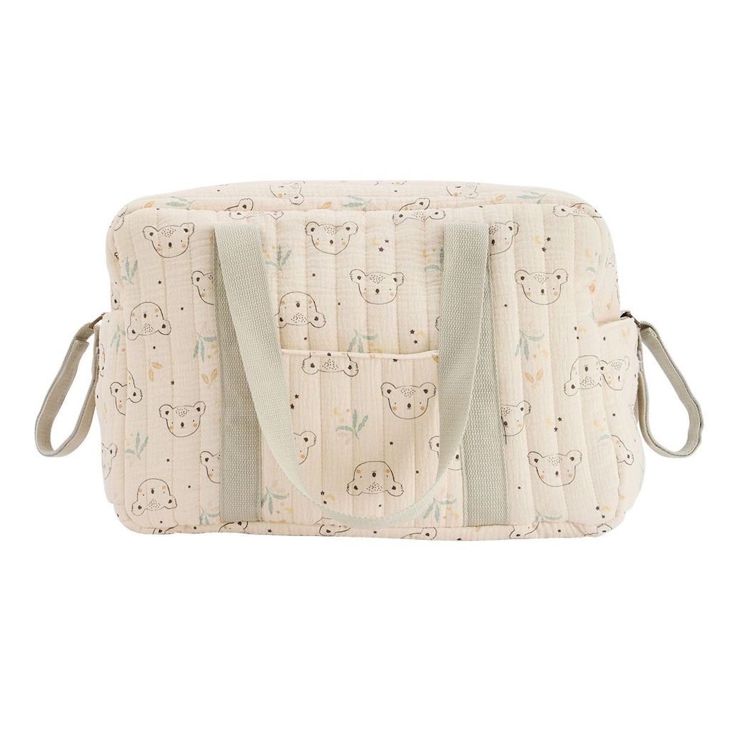 Un sac à langer pensé pour accompagner les premiers déplacements avec bébé. Spacieux et bien organisé, il permet de garder à portée de main couches, vêtements et essentiels du quotidien. Ses anses et sa bandoulière réglable sont parfait pour se promener, avec un imprimé trop chou. Ouverture zippée e