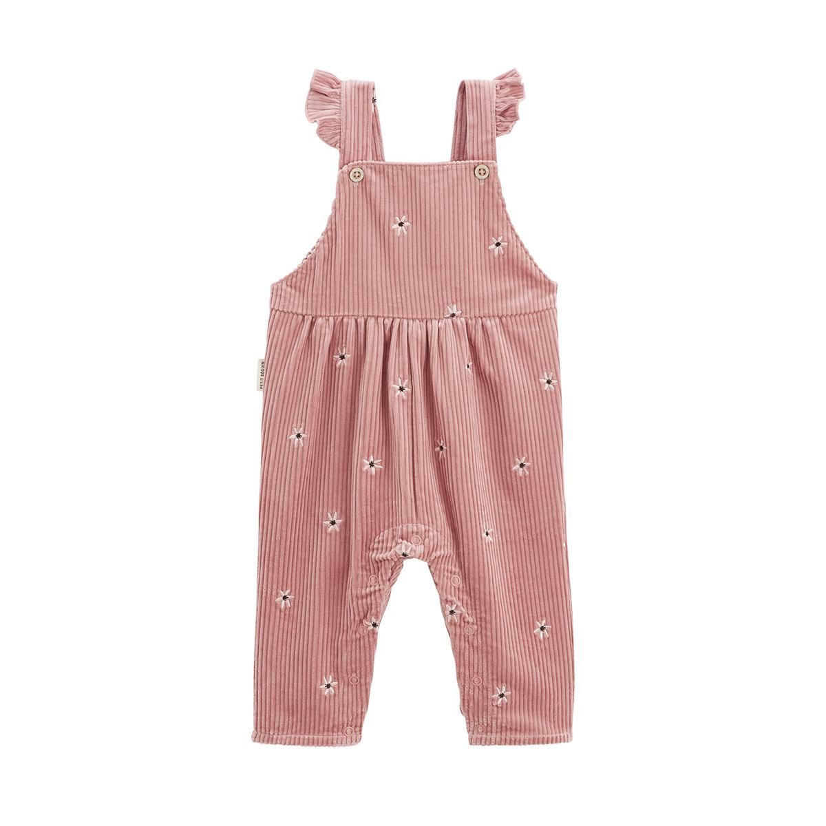 En savoir +Alerte mignonnerie ! Une salopette pensée pour les petites filles avec de jolis volants, des fronces, des petites touches de broderie et surtout une matière à croquer ! Produit labellisé STANDARD 100 by OEKO-TEX ® (BJ020 189402 TESTEX) Des petits + qu'on adore : Bretelles réglables avec des boutons effet bois pailletés et ouverture sur le bas par des pressions En velours côtelé tout doux De jolies fleurs brodés ultra tendance