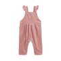Alerte mignonnerie ! Une salopette pensée pour les petites filles avec de jolis volants, des fronces, des petites touches de broderie et surtout une matière à croquer ! Produit labellisé STANDARD 100 by OEKO-TEX ® (BJ020 189402 TESTEX) Des petits + qu'on adore : Bretelles réglables avec des boutons