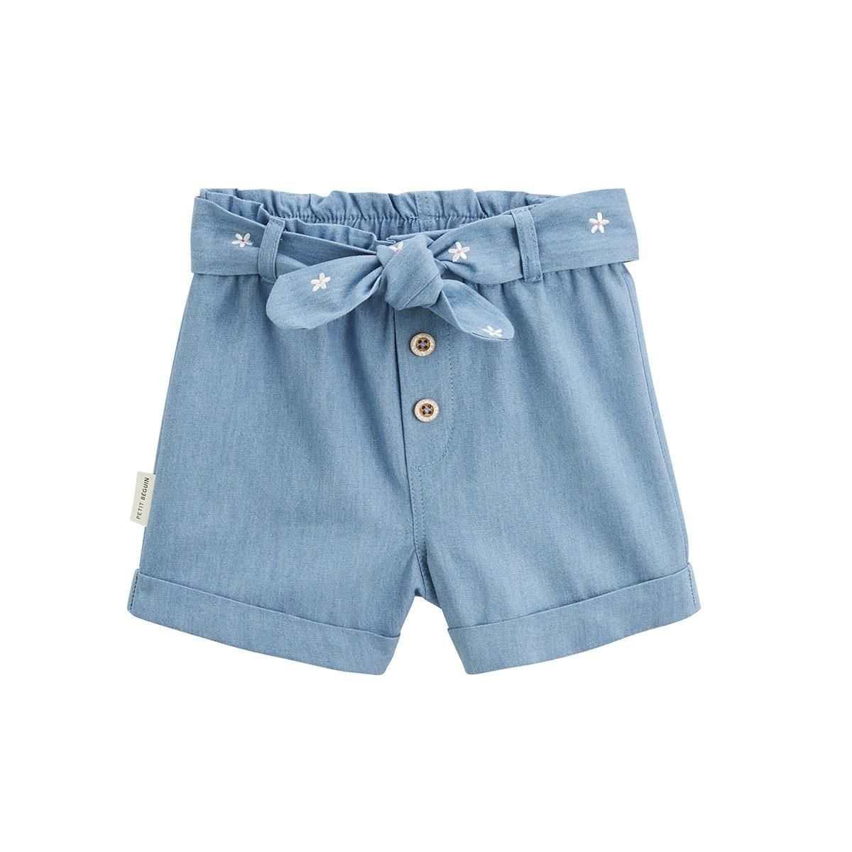 Ce short en chambray est une pièce à la fois chic et décontractée, idéal pour les journées ensoleillées. Léger et confort, on craque pour sa ceinture avec son joli nœud. Ce short est parfait pour un look tendance et pratique, facile à assortir avec vos blouses et t-shirts préférés pour un style tendance !Produit labellisé STANDARD 100 by OEKO-TEX ® (BJ020 189402 TESTEX)Une jolie matière en tissu chambrayTaille élastiquée pour faciliter l'enfilage : plus de confort et de praticité !Des poches pour faire comme les grandsPhotos non contractuelles : les visuels sont fournis à titre illustratif. Les accessoires visibles ne sont pas inclus, l'offre concerne uniquement les pièces mentionnées dans le titre.