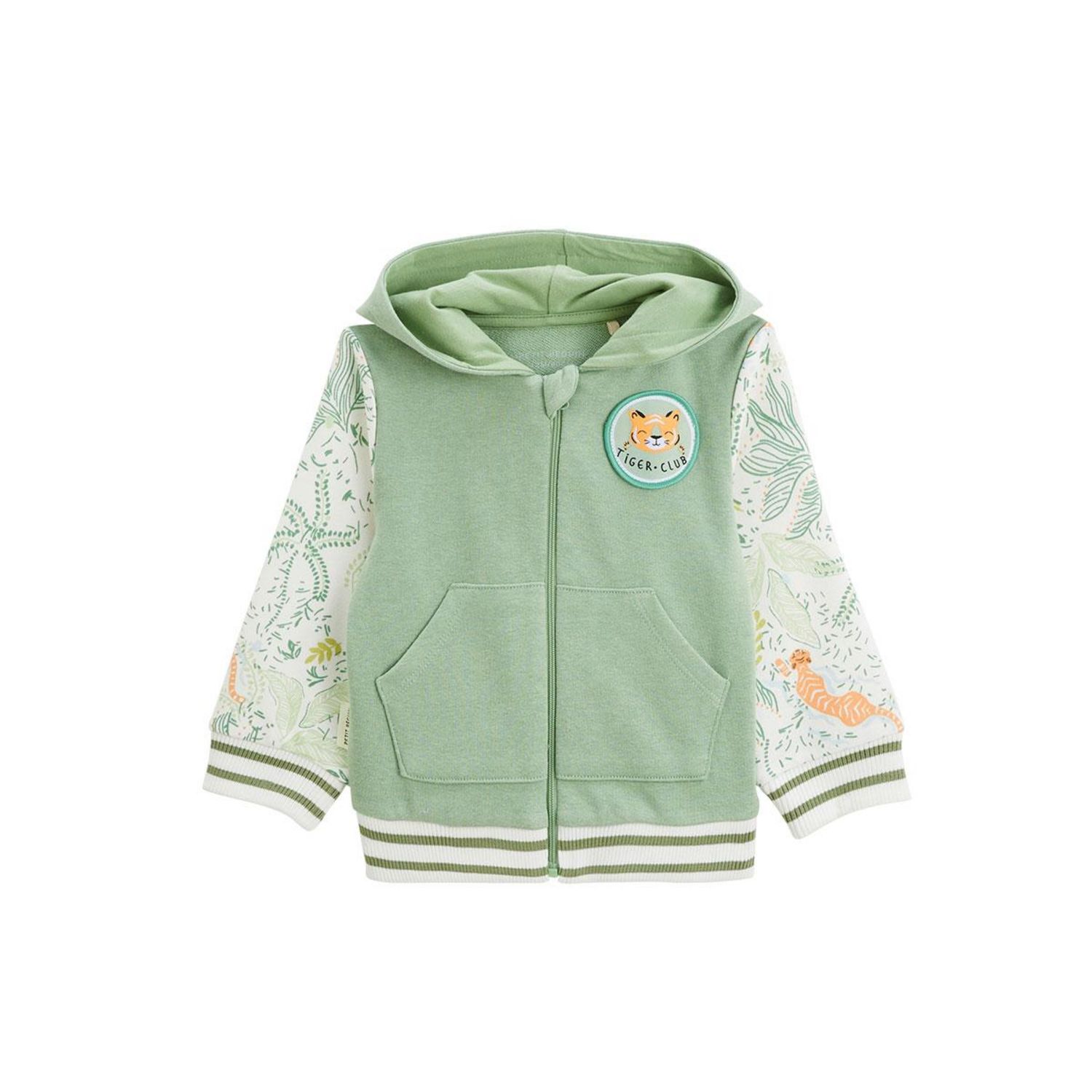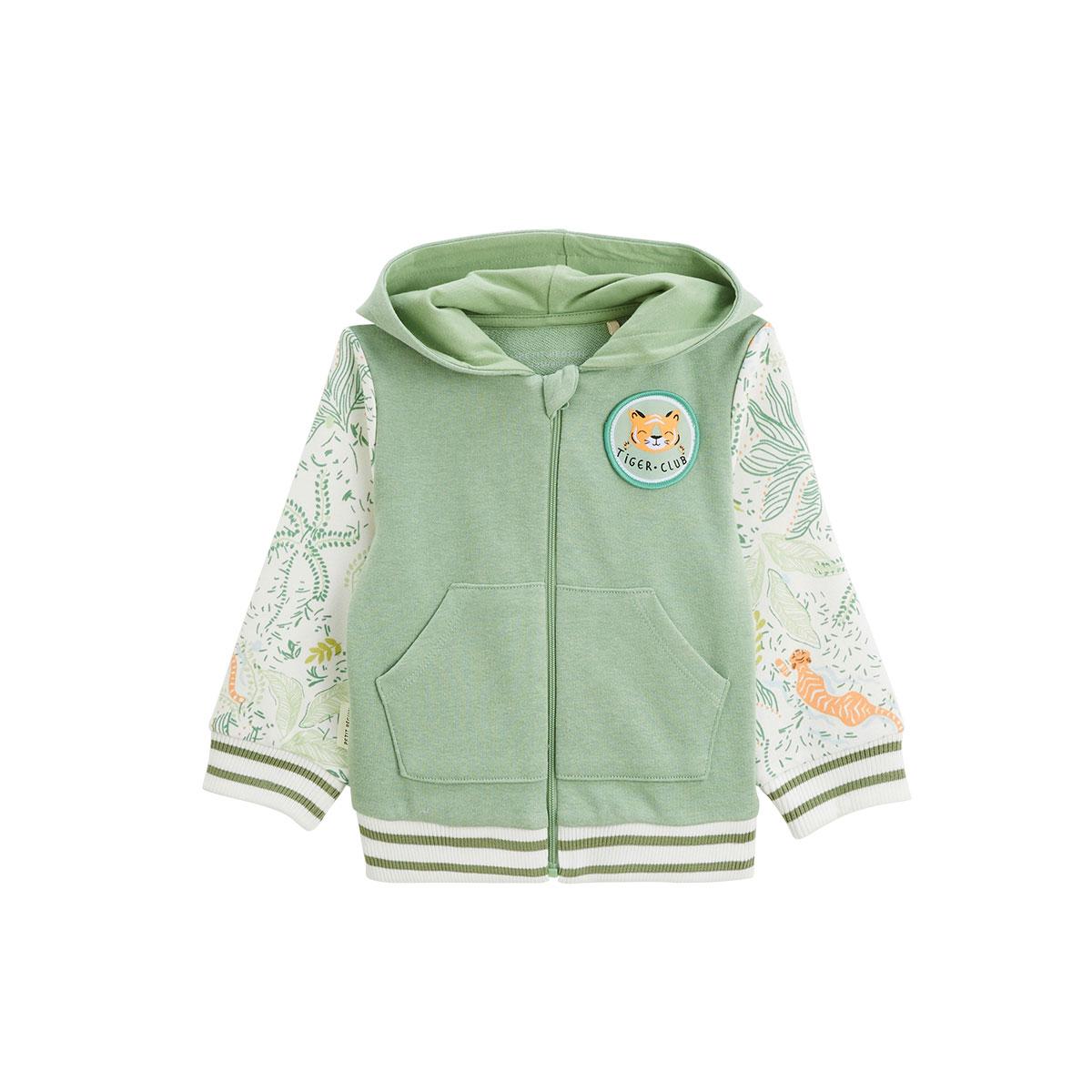 Ce sweat à capuche allie confort et style avec son petit patch tigre trop chou, qui ajoute une touche ludique. Conçu pour offrir douceur et chaleur, il deviendra vite le compagnon idéal de votre petit aventurier. Parfait pour les journées décontractées, il apporte une touche tendance à chaque look.C