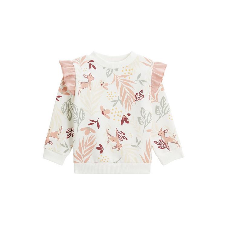 Optez pour ce beau sweat aux détails romantiques avec ses petits volants et ce joli imprimé dans les tons roses et écrus. Sans oublier son côté tendance, il sera douillet pour les journées fraîches grâce à sa matière en molleton gratté. Produit labellisé STANDARD 100 by OEKO-TEX ® (2309200 CENTEXBEL