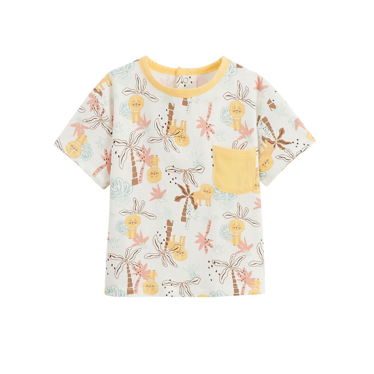 Un t-shirt habillé, pétillant, idéal pour une cérémonie estivale. Son bel imprimé lion, et sa poche contrastée, apporte une jolie touche de pep's, tout en restant chic et facile à porter. À porter avec notre bermuda du même thème pour un look canon. Produit labellisé STANDARD 100 by OEKO-TEX ® (SHGO