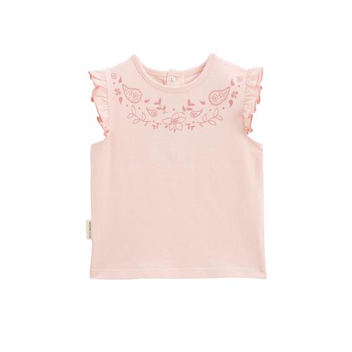 Un essentiel d'été, le t-shirt. Sa coupe simple et confortable en fait une pièce facile à associer, tandis que ses détails délicats, volants et imprimés, lui apportent une touche trop canon. Volants sur les épaules, trop chou Produit labellisé STANDARD 100 by OEKO-TEX ® (SHKO 039388 TEXTEX) Photos n