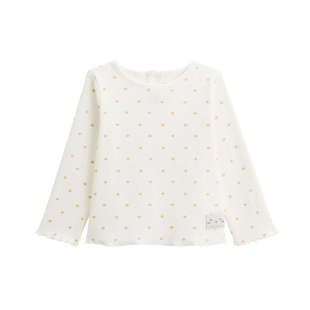 Écru, léger, et décoré de pois dorés : un petit haut facile à porter, parfait à porter avec un joli pantalon.Produit labellisé STANDARD 100 by OEKO-TEX ® (2309200 CENTEXBEL)On craque pour ces petits pois dorésJolies finitions volantéesPhotos non contractuelles : les visuels sont fournis à titre illu