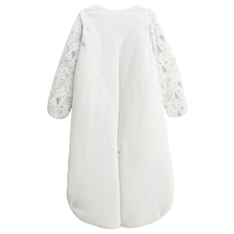 Pratique et confortable, cette turbulette écrue s'adapte à tous les moments de bébé : ses manches sont amovibles et ses jambes séparables pour passer facilement du lit au siège auto ou à la poussette. Elle est décorée de jolis imprimés petite souris et dotée de moufles intégrées pour garder bébé bie