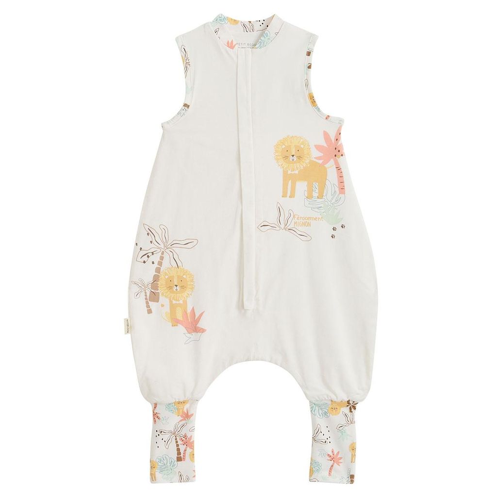 Cette turbulette à pieds est idéale pour les nuits plus douces. Son coloris écru, ses petites touches de jaune soleil et ses jolis motifs jungle et du lion, crée un univers tendre et rassurant. Avec ses pieds retroussables, votre petit bout peut bouger confortablement tout en restant bien installé.