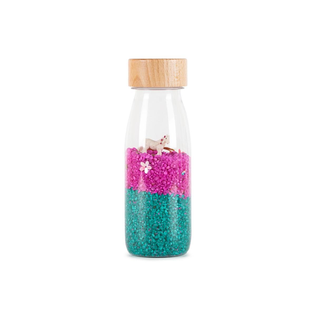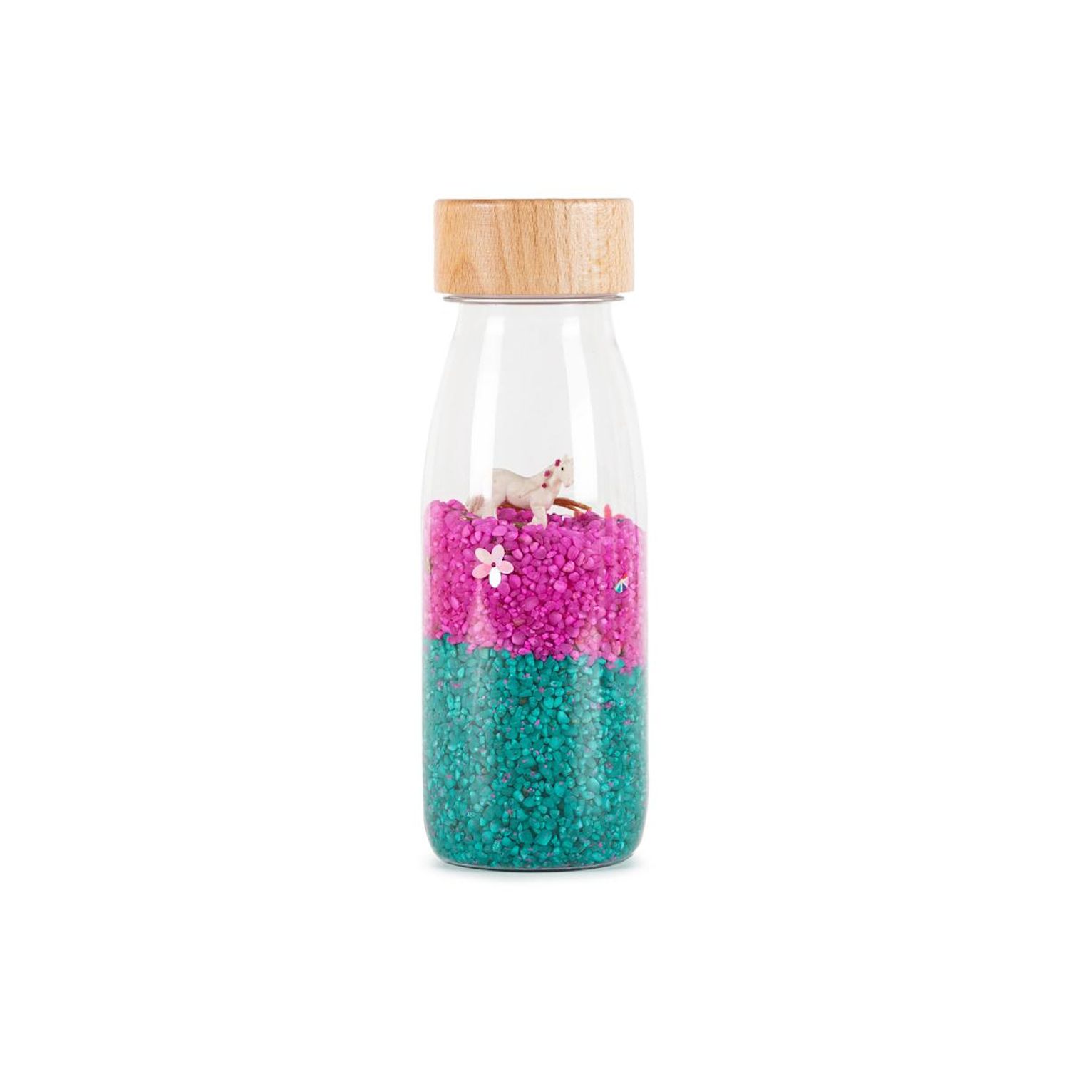 Quelle créature magique pouvez-vous voir ? Parfait pour faire découvrir votre bébé accompagné d'un livre d'histoires montrant des licornes et autres créatures mythiques. Regardez, secouez? et écoutez ! Aussi simple et efficace que cela. Les petits objets de la série SOUND BOTTLE sont un véritable spectacle pour les plus petits. À l'identification visuelle des objets contenus s'ajoute la stimulation auditive, particulièrement importante au cours de la première année de la vie d'un enfant. Il aide à la discrimination auditive : du plus doux au plus fort, en associant chaque son à sa source. Stimule la motricité globale : empiler les bouteilles, les secouer, les faire rouler?. Dimensions de chaque bouteille : 14cm x 4cm. Ne pas plonger dans l'eau ni exposer au soleil pendant de longues heures, pour des raisons d'hygiène nous vous recommandons de l'essuyer avec un chiffon humide.