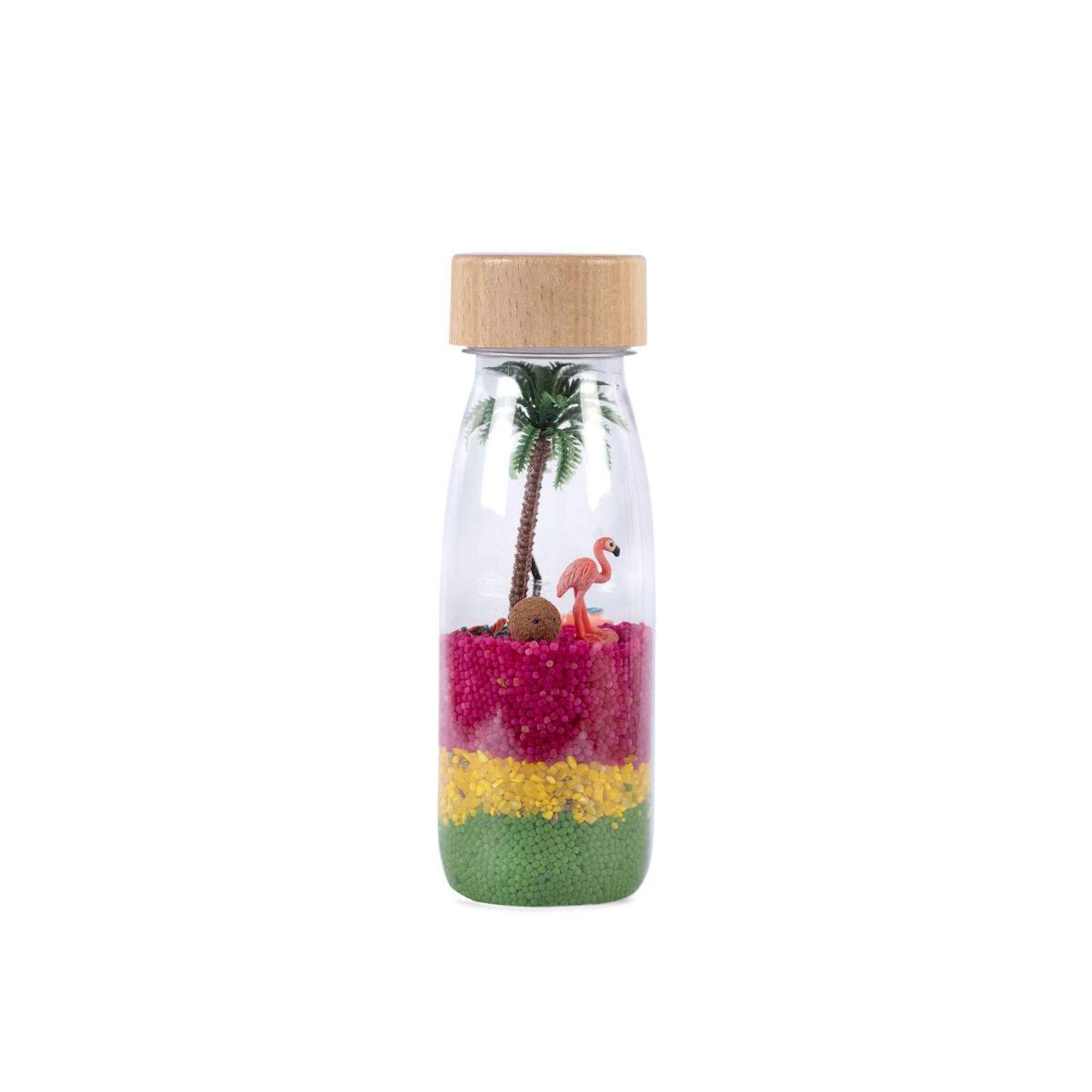 Nous partons en vacances ! Il est temps de se détendre sur cette île tropicale. Déserté? Pas si vite? Entre le sable et le paysage coloré nous trouverons de nombreuses surprises, dont un personnage ailé. Un microcosme dans chaque flacon. Dans chacune des Spy Bottles E, nous recréons un environnement naturel, avec des animaux qui deviendront les personnages principaux de l'imagination de vos enfants. Les enfants apprécieront identifier les objets, les imiter, les répertorier et créer des histoires ou simplement découvrir les différents écosystèmes. Un véritable aimant à la curiosité des enfants !. Comprend un livret avec des suggestions d'activités spécialement recommandées pour les enfants de 18 mois et plus. Dimensions de la bouteille : 14 cm x 4 cm. Ne pas plonger dans l'eau et ne pas exposer au soleil pendant de longues heures. Pour le nettoyage, nous vous recommandons de l'essuyer avec un chiffon humide.