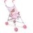 Le tissu de la poussette est blanc et rose avec une constellation de jolis motifs en formes de petites fleurs.