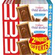 PETIT BEURRE 52 % : Farine de BLÉ 68 %, sucre, BEURRE concentré 14 %, LAIT écrémé en poudre, poudres à lever (carbonates d'ammonium, carbonates de sodium, diphosphates), sel, correcteur d'acidité (acide citrique). Chocolat au LAIT 48 % : Sucre, beurre de cacao, pâte de cacao, LAIT écrémé en poudre, lactosérum en poudre (de LAIT), BEURRE concentré, émulsifiants (lécithines de SOJA, E476), arôme. PEUT CONTENIR FRUITS À COQUE.