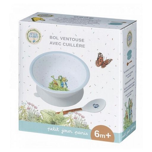 Bol ventouse avec cuillère Pierre Lapin Bleu